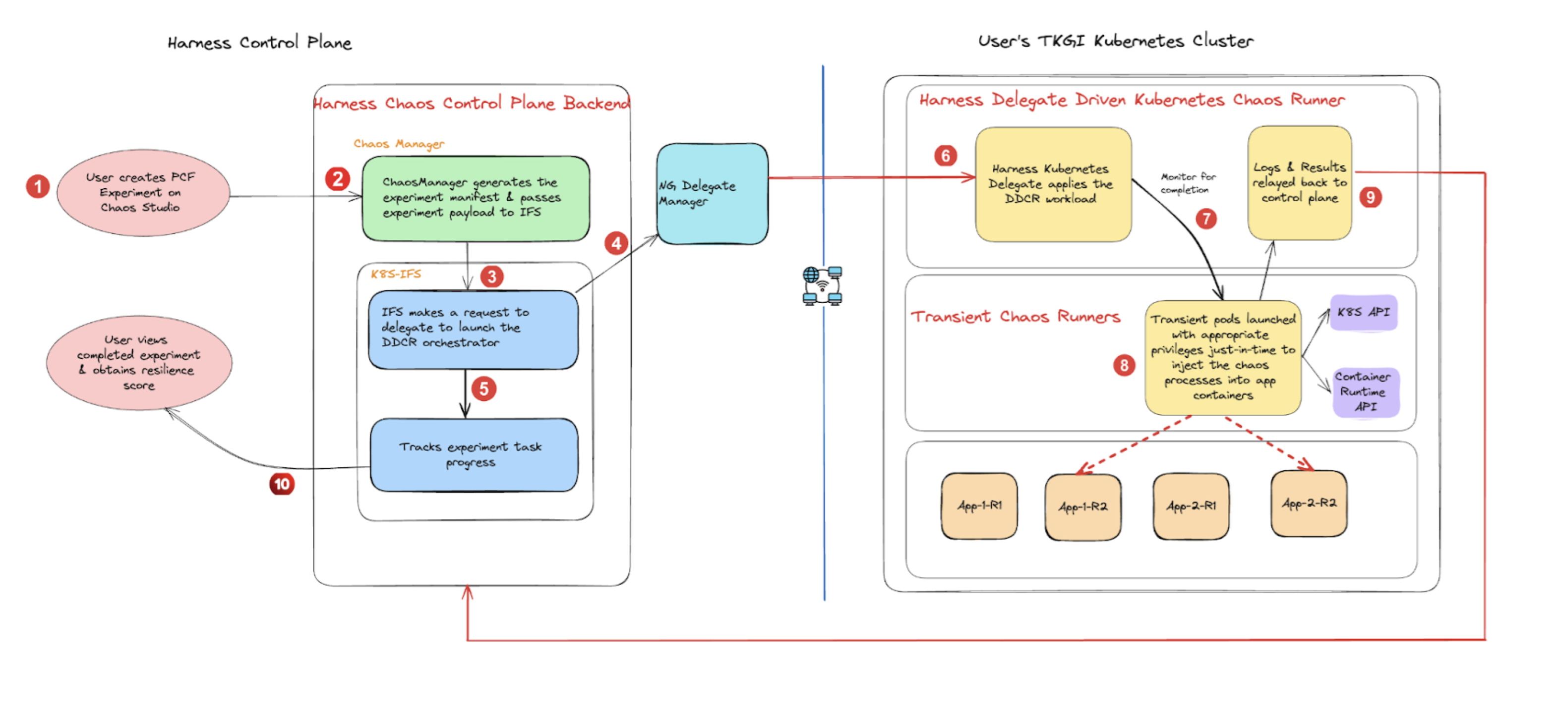 DDCR, aka Harness Delegate or DDCI (Delegate-Driven Chaos Infrastructure) or DDCR (Delegate-Driven Chaos Runners) is a service that runs in your local network that helps connect your infrastructure, artifacts with Harness Manager. It allows for quick onboarding and optimized chaos execution for microservices-based targets on Kubernetes.