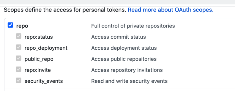 - In Secret Value, paste in a GitHub Personal access token. When you're logged into GitHub, these are typically listed at https://github.com/settings/tokens. For steps on setting up a GitHub PAT, go to Creating a personal access token from GitHub.