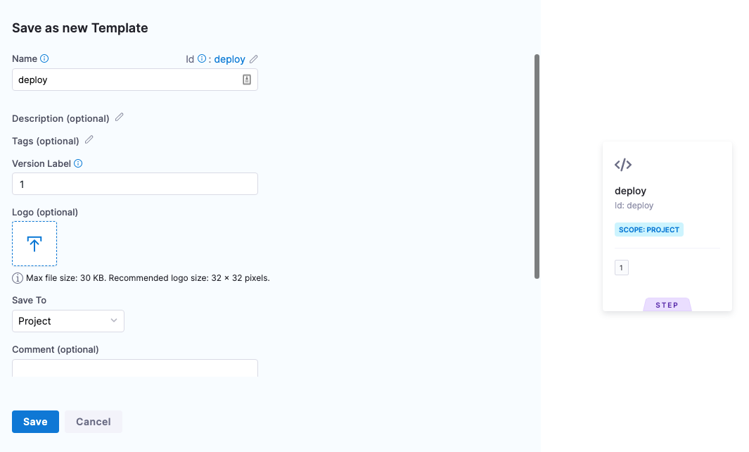 - In Version Label, enter v1.In Logo, you can upload an image to use as the icon for this template.