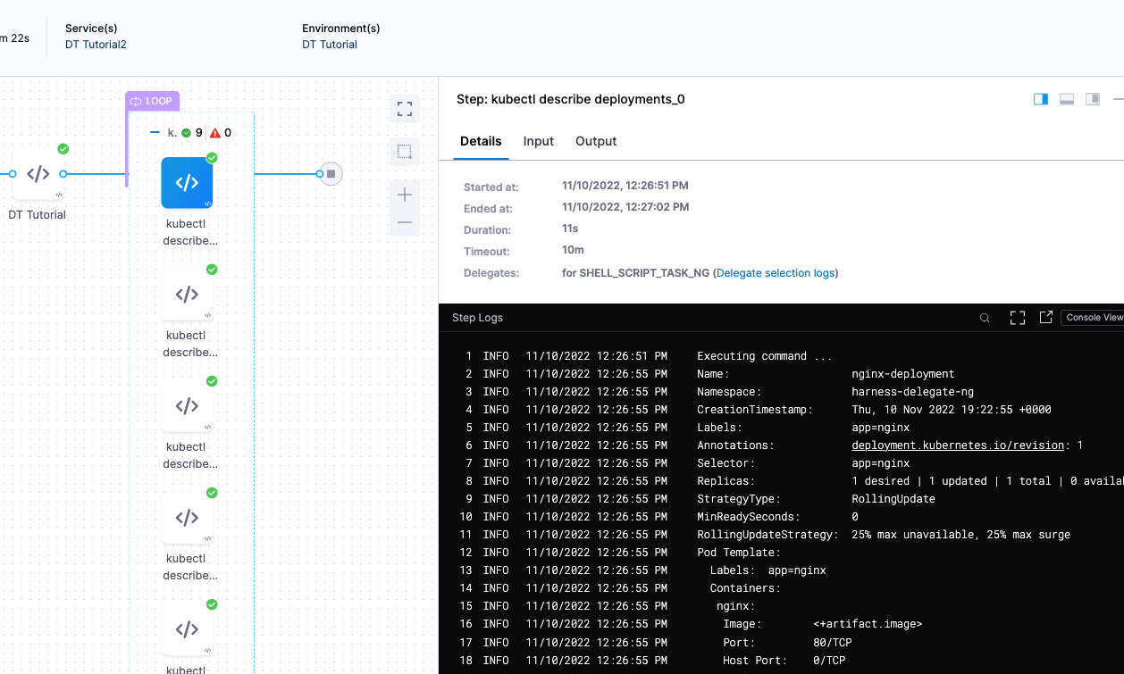 This tutorial will walk you through very simple Deployment Templates using Kubernetes. Harness includes first-class Kubernetes support (see Kubernetes deployment tutorial), but we will use it in this tutorial as it is a very simple way to review Deployment Templates features.