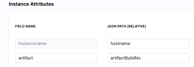 items. - Instance Attributes: the JSON path to the instance name label for the target instances.Mapping the fieldname