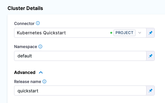 Back in Cluster Details, in Namespace, enter the target namespace for the deployment. For example, default. You can use any namespace in your target cluster.