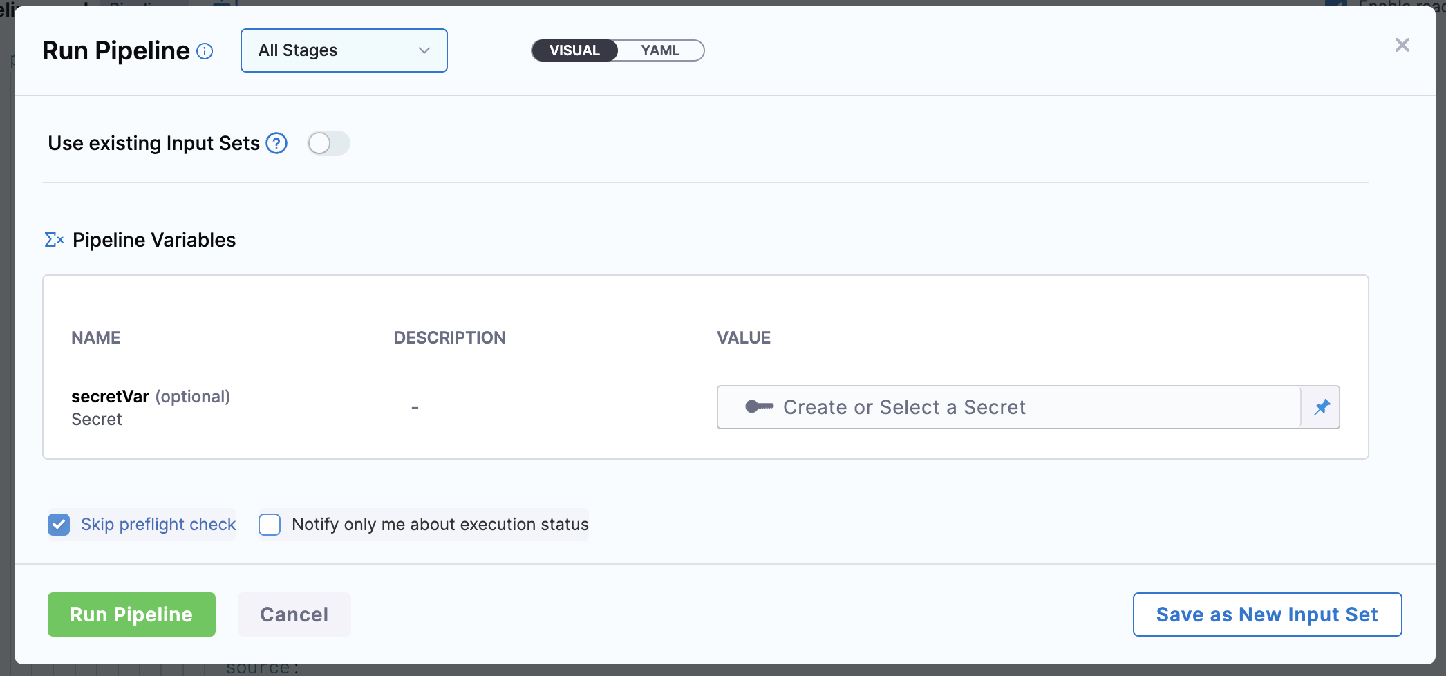 What does "Notify only me about this Execution" mean on the Run Pipeline form?