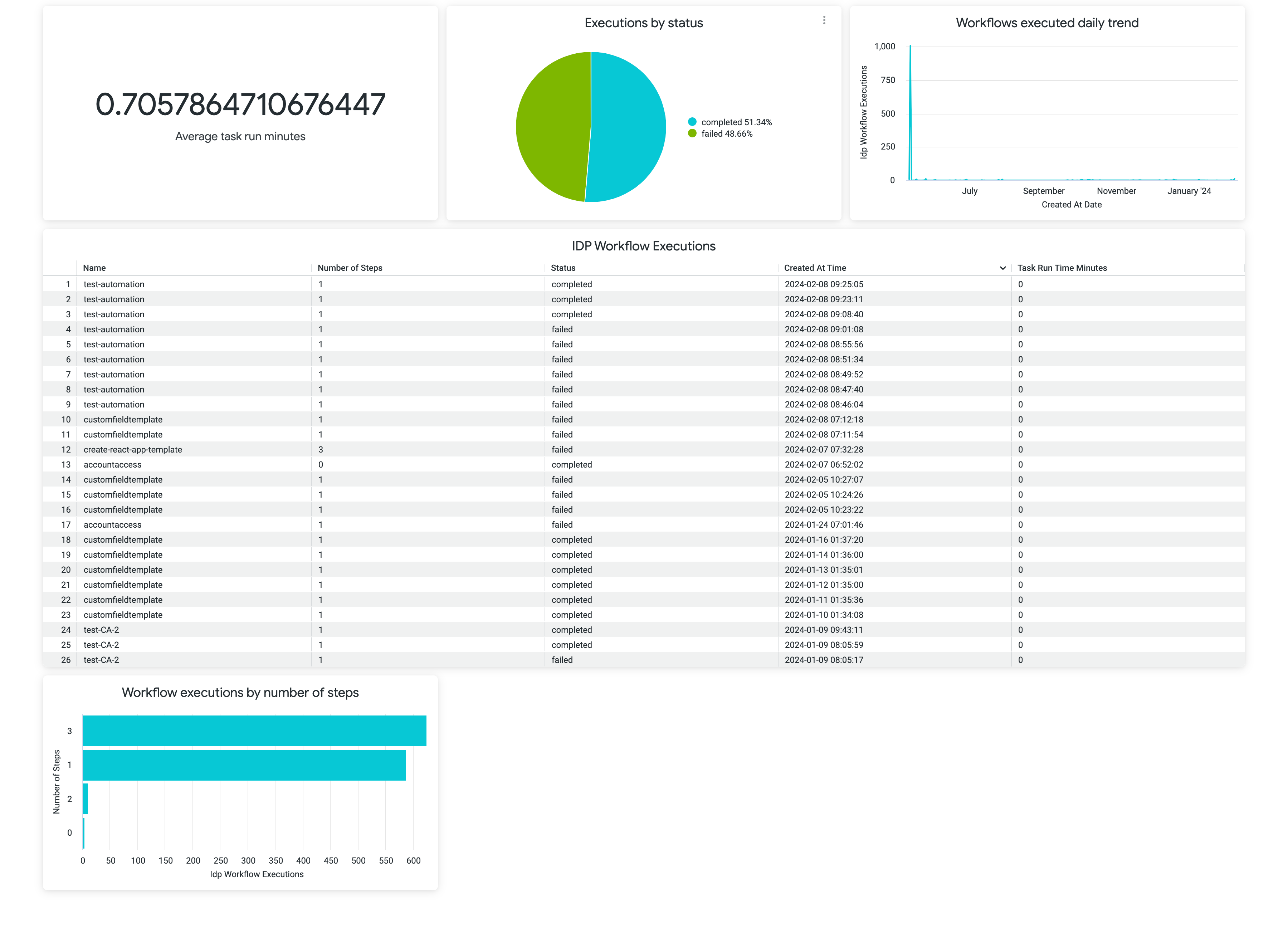 1. Dashboard describing the Workflow Execution details