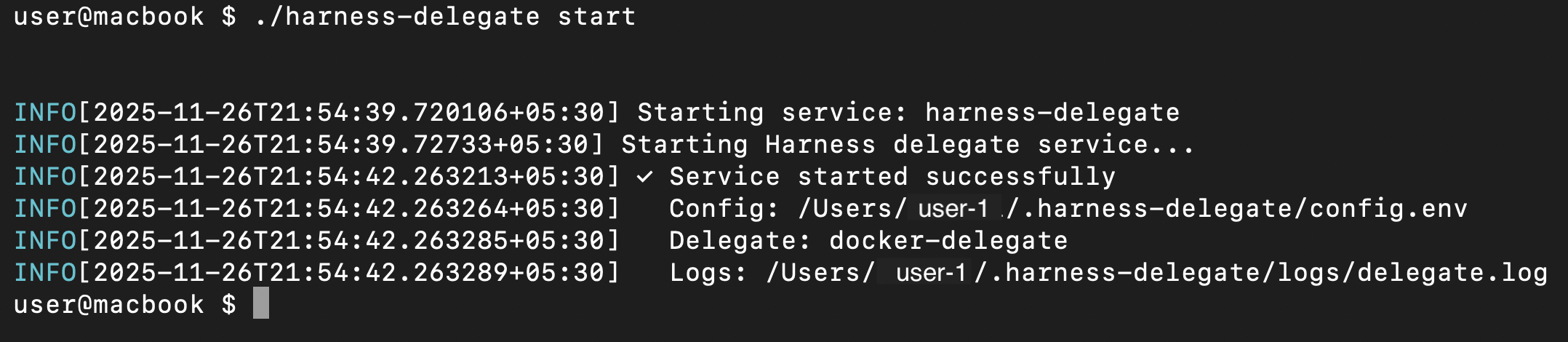 tail -f ~/.harness-delegate/logs/delegate.logNavigate to Project Settings > Delegates in Harness UI. You should see your delegate with a Connected status.