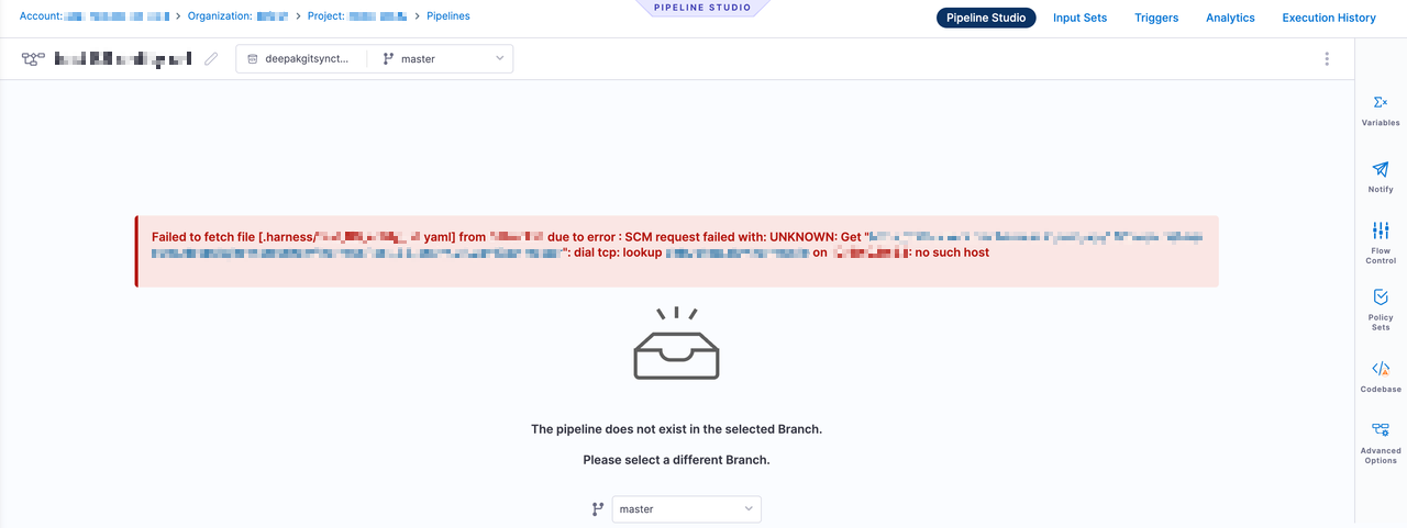 If during the connectivity issues with the code repository a particular object in Harness requires a re-cache and is unable to, the object will be show up as being inaccessible or missing.