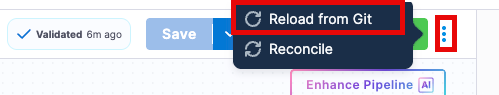 You can refresh the cache and reload the entities from Git by selecting the Reload from Git option.