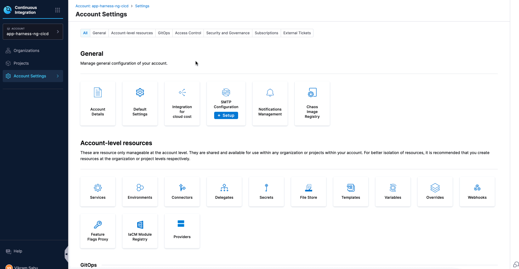 With notification settings, you can enable or disable notification channels at an account level. By default, all notification channels are enabled on an account. Organizations and projects in the account inherit the account-level settings.