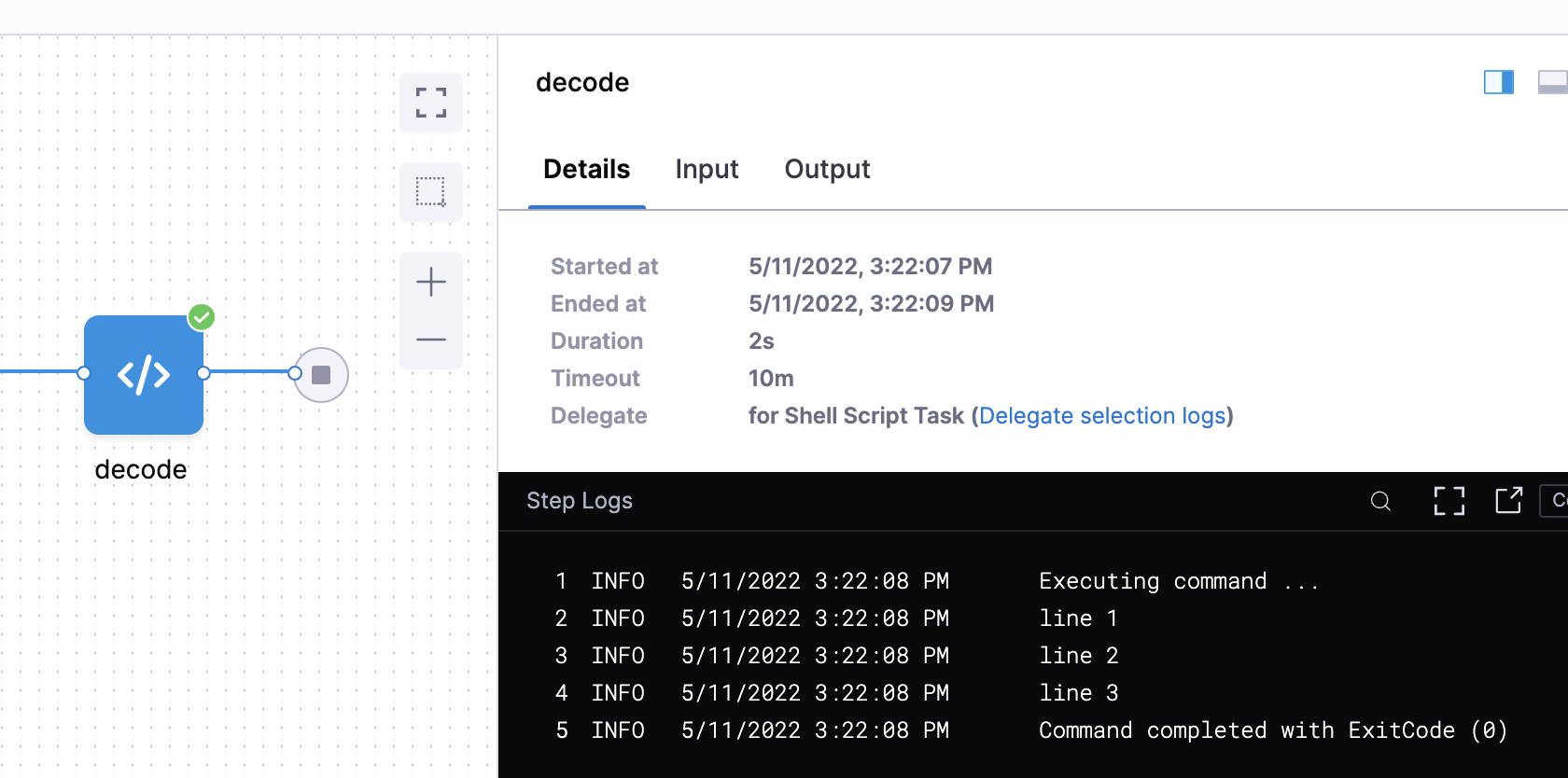When this value is base64-encoded, it results in an output like bGluZSAxCmxpbmUgMgpsaW5lIDM=. You could add this value to a Harness secret named linebreaks, and then decode the secret with a command such as echo <+secrets.getValue("linebreaks")> | base64 -d.
