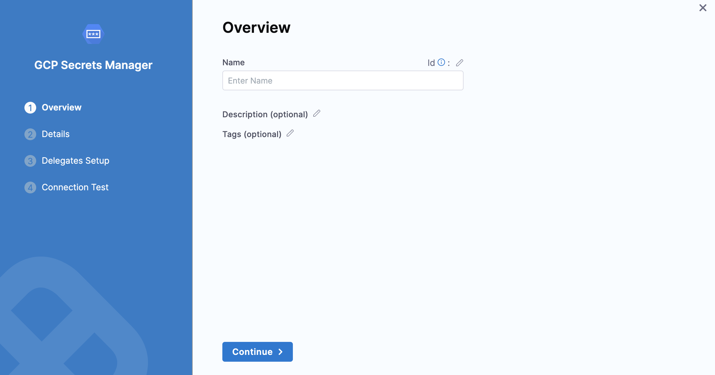 2. You can choose to update the Id or let it be the same as your secret manager's name. For more information, go to Entity Identifier Reference.